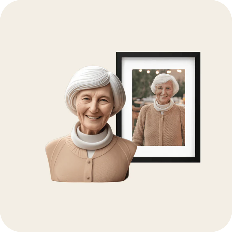 Créez un hommage intemporel avec un portrait 3D personnalisé qui fera vivre leur souvenir pour les générations à venir.